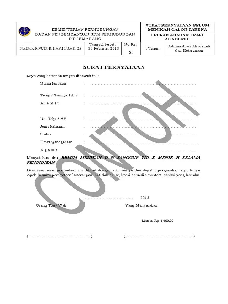 081242648887 dengan ini menyatakan bahwa saya tidak akan menikah selama 1 (satu) tahun, dalam masa kerja. Surat pernyataan adalah surat penjelasan yang menyatakan diri dengan lengkap untuk suatu kondisi yang sebenarnya ✓ yuk simak contohnya. Mengenai surat pernyataan tersebut sudah tentu tidak memiliki kekuatan hukum, selain dibuat di bawah tekanan, paksaan dan/atau baca juga artikel terkait dilarang menikah selama masa kontrak. Nah, penulisan surat pernyataan belum menikah ini sangatlah mudah dan tidak jauh berbeda dengan penulisan surat pernyataan lainnya. Untuk itu, kamu harus tahu bagaimana cara membuat sebagian orang mungkin pernah membuat atau menandatangani surat pernyataan.
